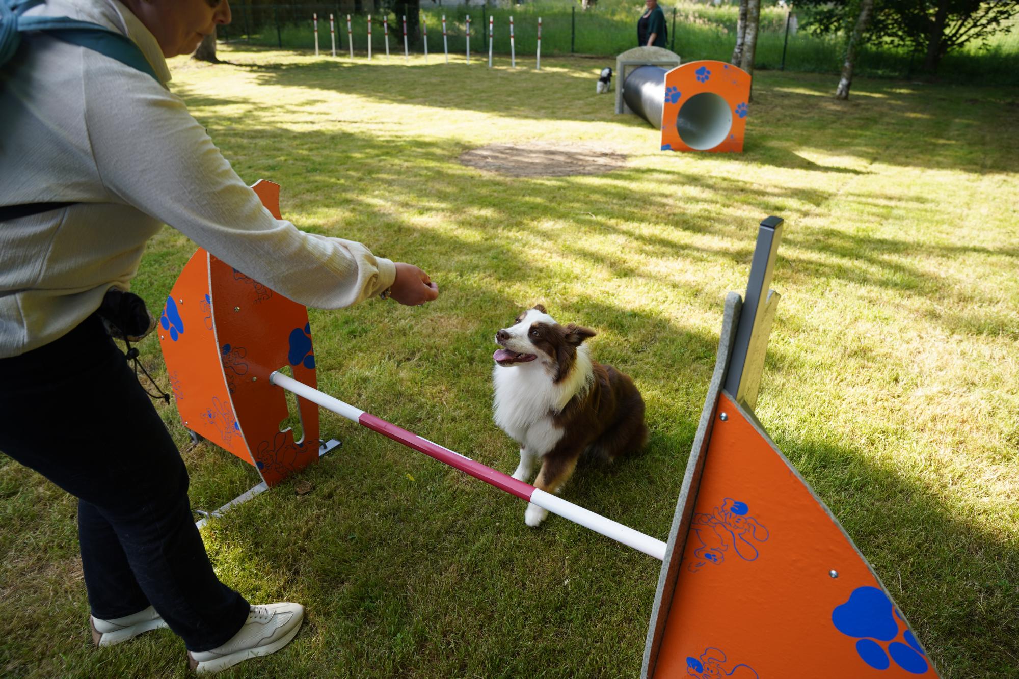 espace d’agilité, banc, point d’eau, poubelle et sachets de déjection canines
