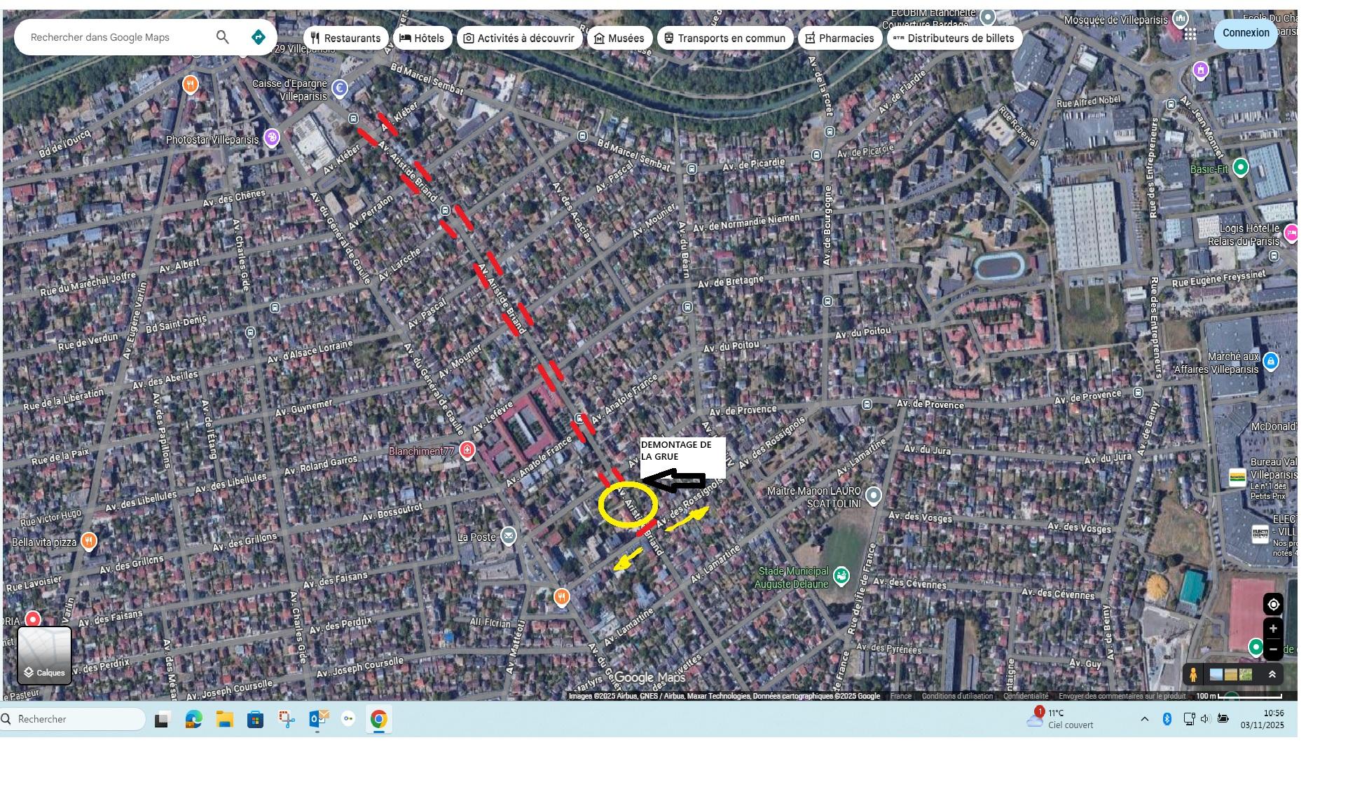 Dans le cadre du démontage d'une grue située au niveau du N° 61-65 avenue Aristide Briand, nous sommes contraint de fermer l’avenue Aristide Briand à partir du carrefour de l’avenue Rossignols. Le démontage se fera de nuit le 5 décembre 2025 et débutera à partir de 22H00 jusqu’à 6H00.